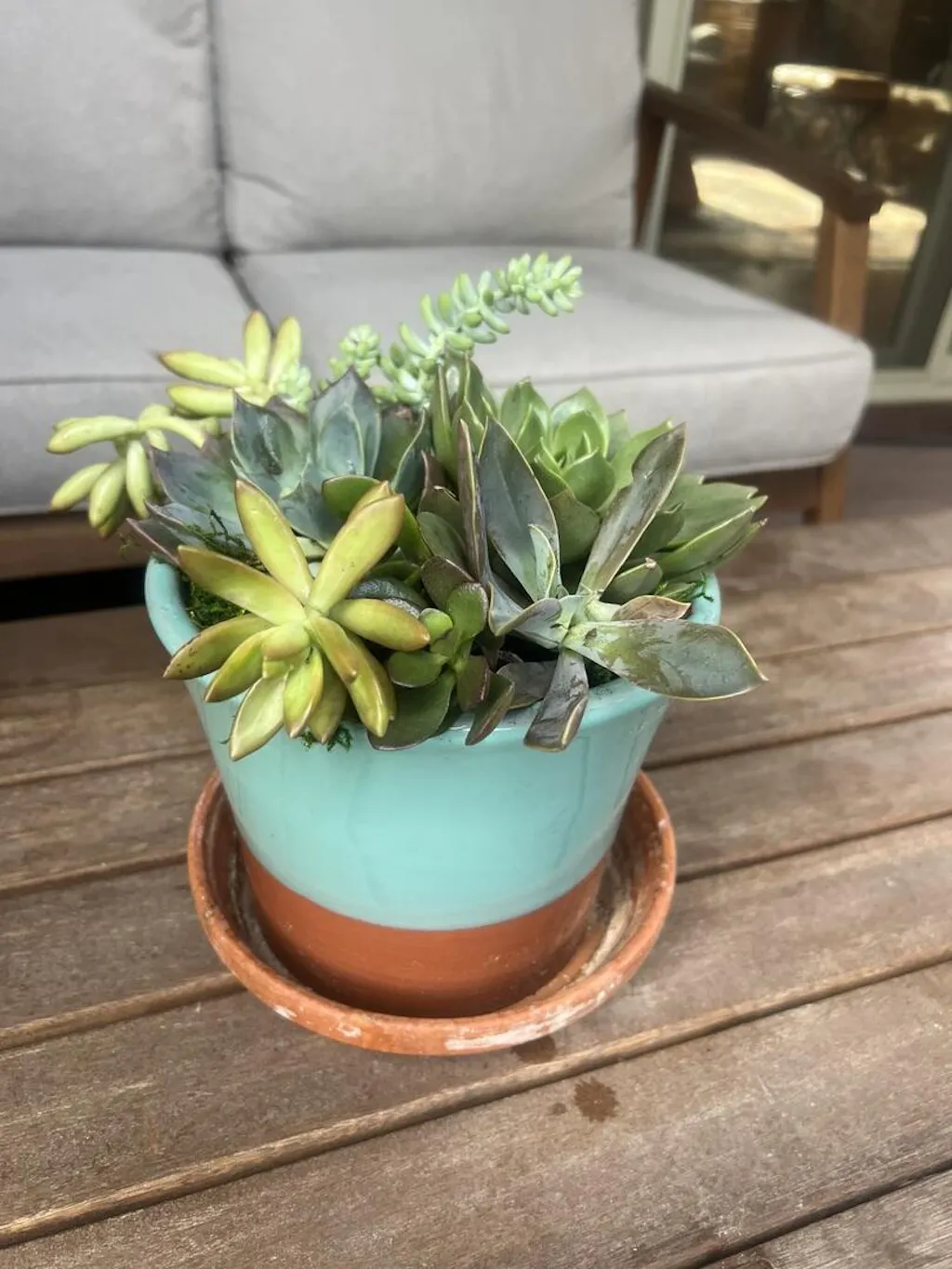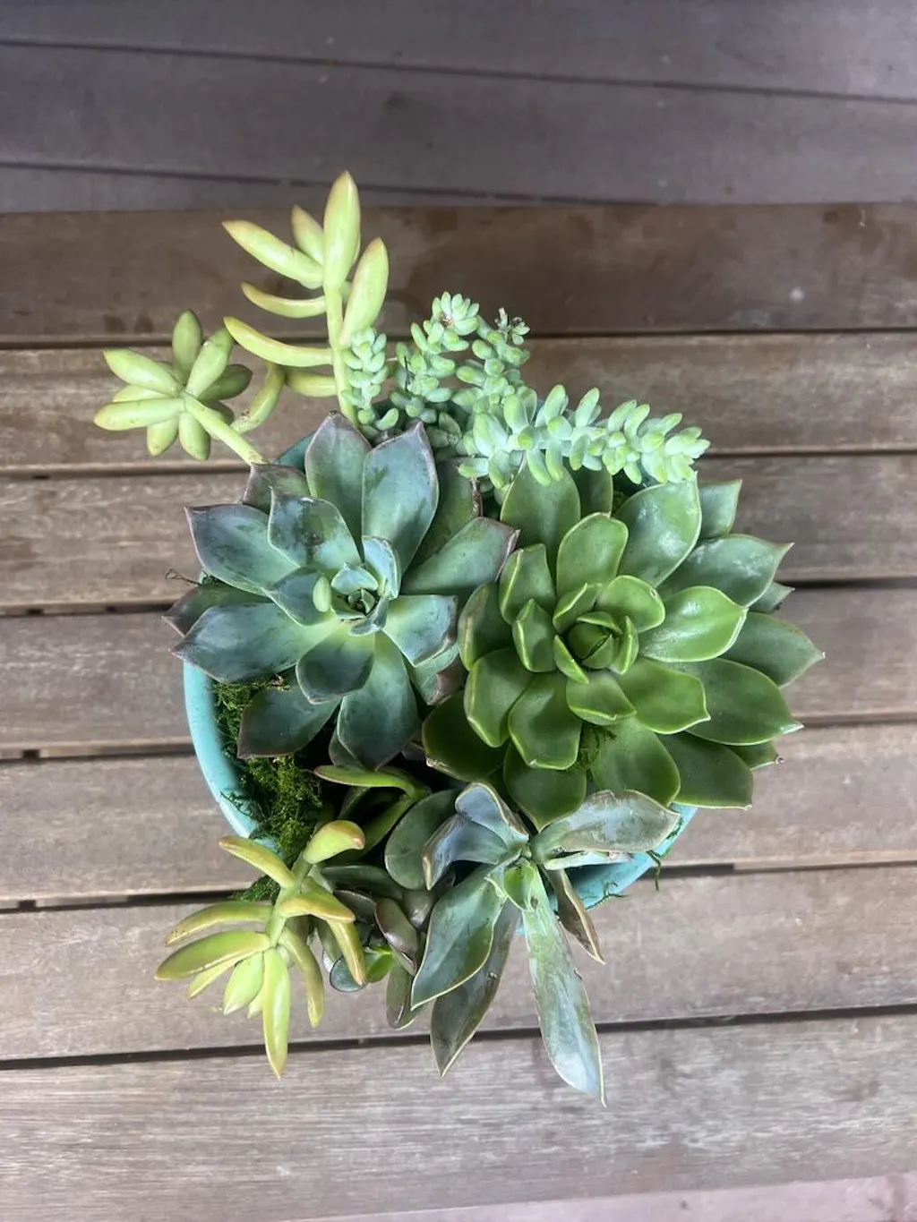 With the most minimal care, and a nice bright spot, this succulent garden pretty much takes care of itself. Ok, not quite, but we are sure even the busiest person can water this plant gift twice a MONTH. These plants are very tolerant. They can handle being ignored for days at a time. Of course, they prefer a little conversation, or perhaps a song, but honestly— some bright filtered light (like where the sun comes through a sheer window curtain) and an occasional drink of water are the only two things on their check list.