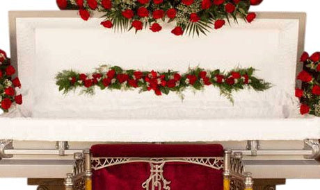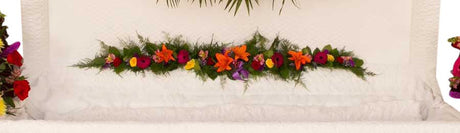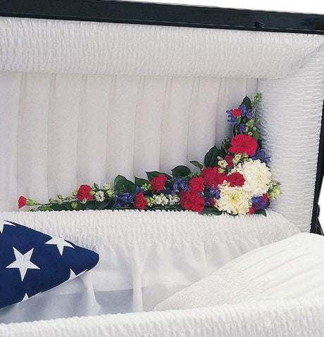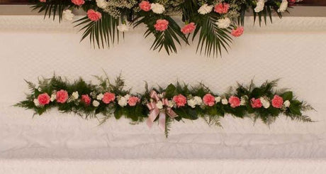 Funeral casket flowers are generally chosen by immediate family members, and they include not only the traditional casket sprays but also hinge sprays, pillows, rosaries, and adornments for the inside of the casket. Little touches like inside-casket flowers go far in showing just how much the deceased was thought of.