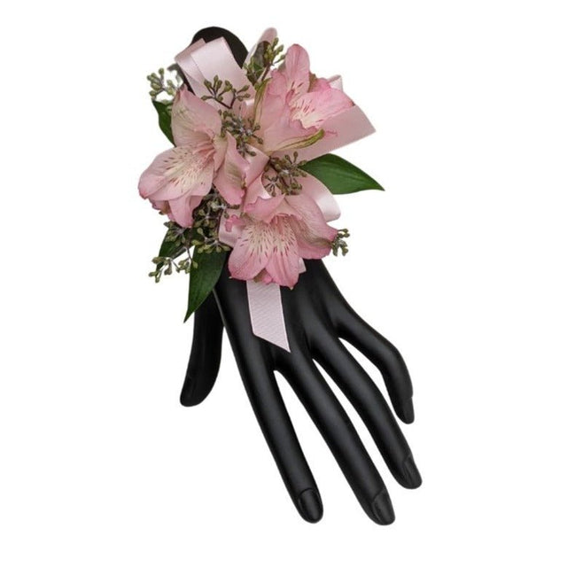 Delicate blooms of colorful Peruvian lilies accented with just the perfect amount of airy greenery make this corsage ideal for those who just want a small floral accent for their special occasions. Available in wristlet and pin-on options, this lovely corsage is a favorite for Mother's day and father-daughter dances.