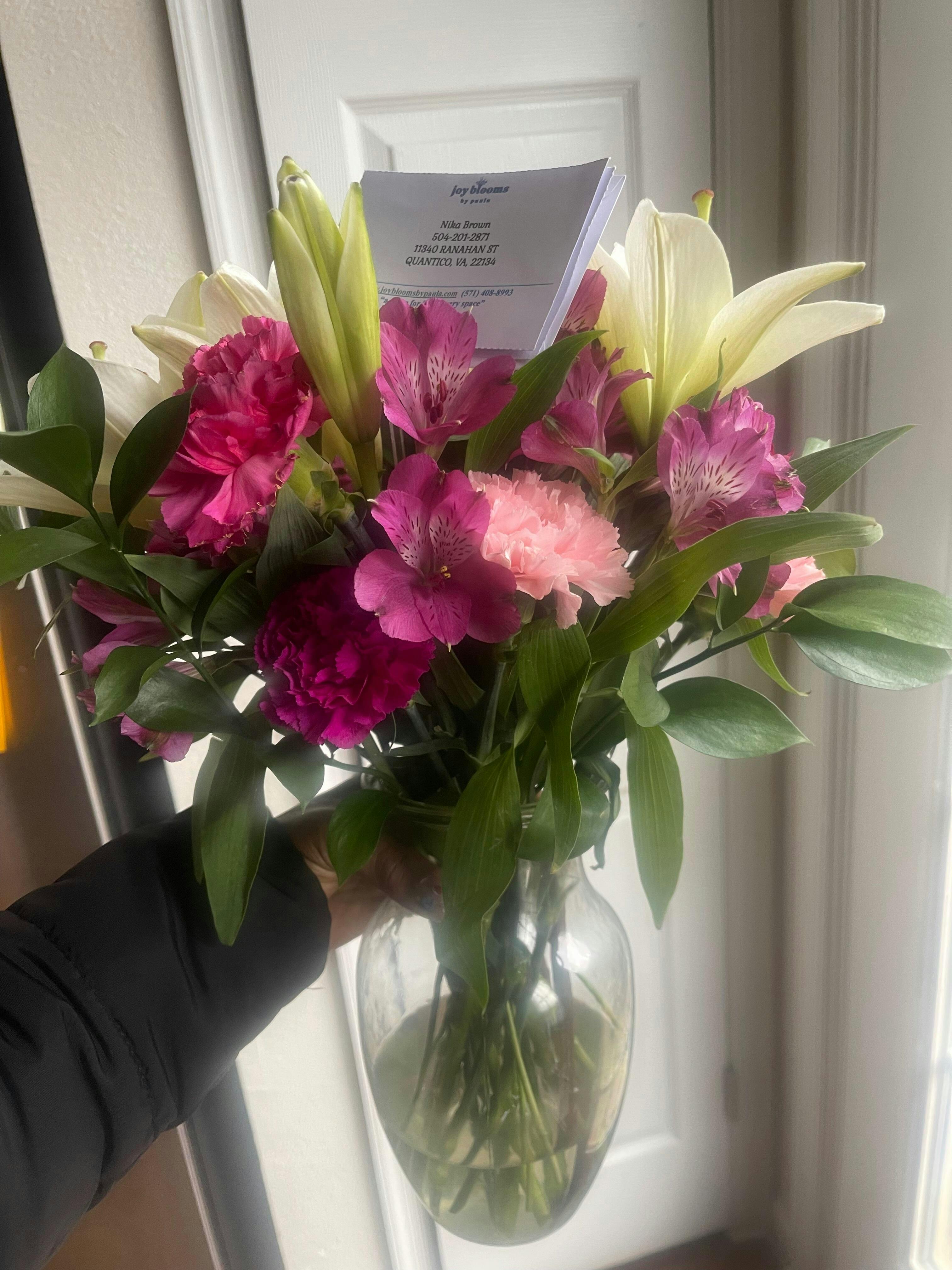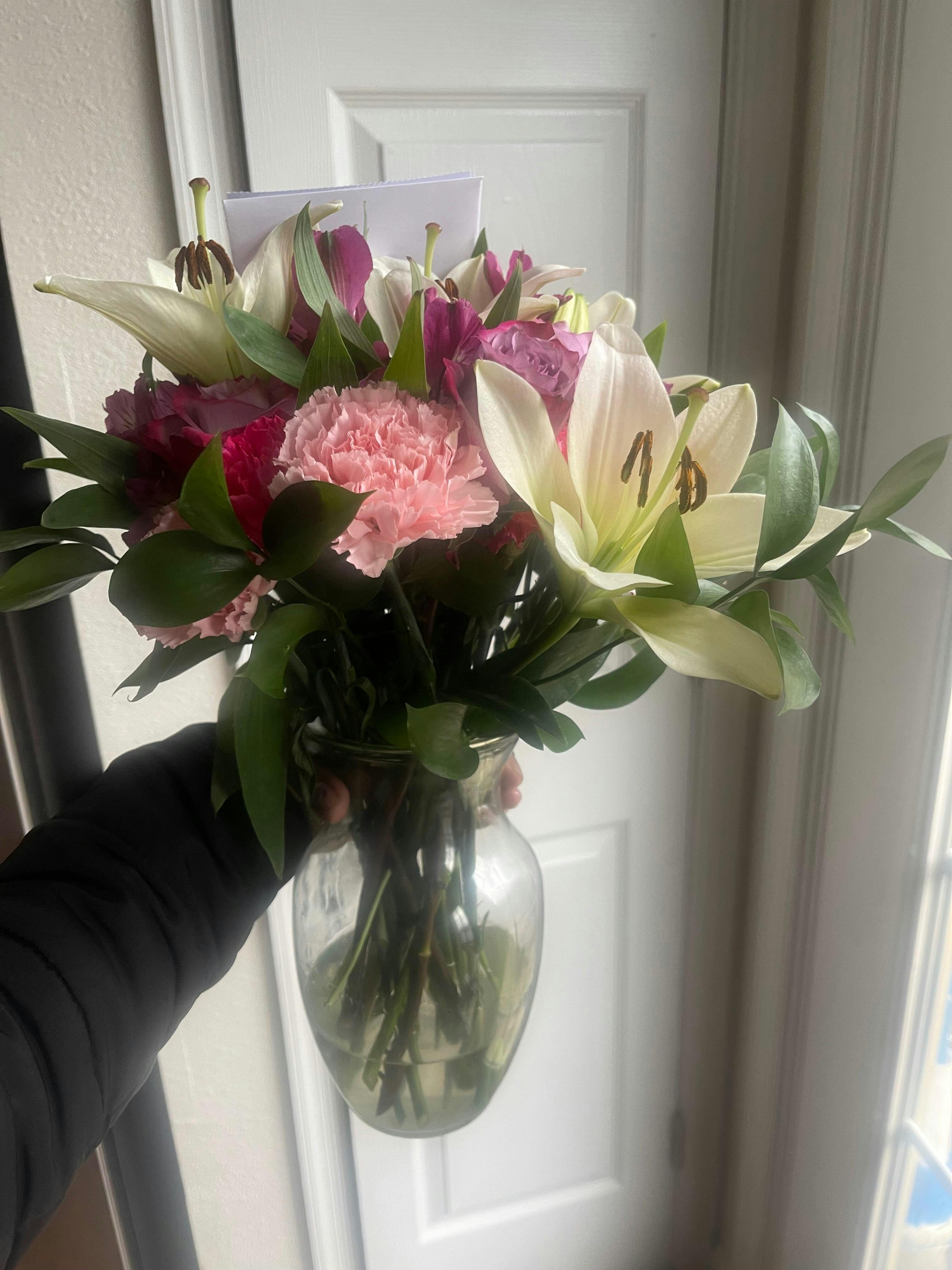 In arrangements of assorted flowers, the colors shown online will be used if at all possible, even if this means substituting other kinds of flowers of equal or greater value.