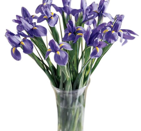 Fresh cut irises are usually of the Dutch variety, and commonly come in shades of dark blue, light blue, purple, white, and yellow. Most irises will feature yellow striping on their petals, regardless of their dominant color. Irises are one of the few types of blue flowers, the least represented color in nature. Their vibrant blue hues make them perfect for any floral design requiring blue blooms, such as a gift for a baby boy, masculine arrangement, or for anyone with the favorite color blue.