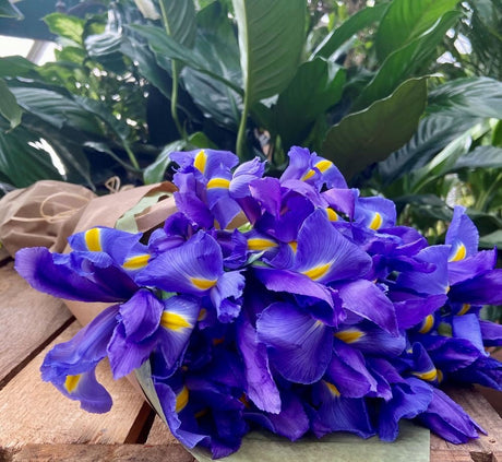 Irises are a favorite in flower arrangements for all occasions. The pretty blooms pair well with spring flowers such as tulips, daffodils, hyacinths, and stock. Their bright hues also compliment summer varieties like sunflowers, gerber daisies, and snapdragons. Florists often design irises into vase arrangements where they will receive the water they need and their delicate petals will be protected from any bumps as they travel to their recipients.