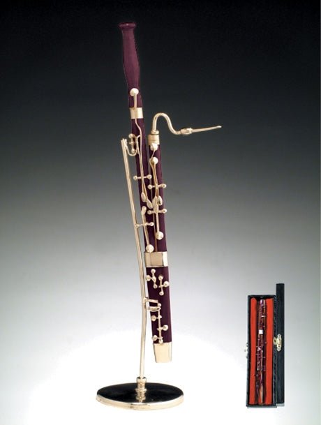 An accomplished bassoonist has mastered one of the most difficult instruments to play. The double reed instrument is a member of the woodwind family and literally requires all fingers and thumbs be used. Known for its warm, distinctive sounds, the bassoon is often compared to a baritone’s voice.  While not the full 4’ long, this replica bassoon still showcases the intricate details of the crook, bass joint, hand rest and keys.