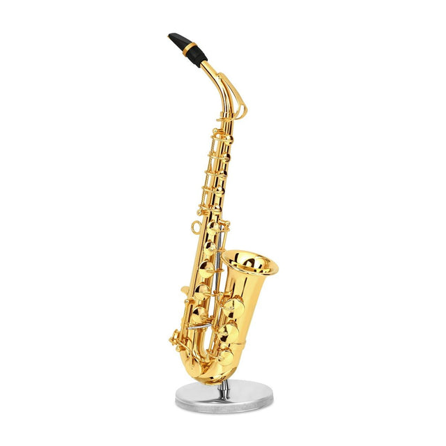 The Miniature Gold Brass Saxophone is a decoration for desks and bookshelves. For the budding musician or the life-long player, this is a decoration that expresses their personality and love of music. With two ways to display, the Miniature Gold Brass Saxophone is a great gift for birthdays and holidays.