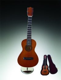 When first introduced, the ukulele was described as a cross between a banjo and guitar. Did you know that there are four main sizes of ukuleles? Soprano, concert, tenor and the largest— baritone which comes in at around 30". That would make it about three and half times longer that our replica Miniature Ukulele!