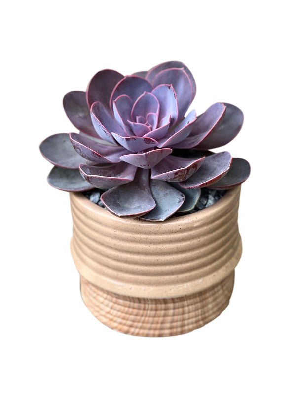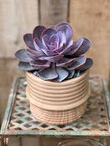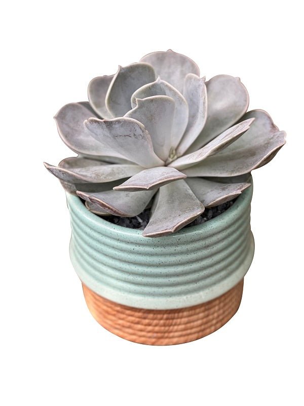 Our Drip Glaze Succulent Garden is a large single succulent plant in a decorative ribbed container. Easy to care for and long lasting, this makes a great gift at an affordable price. Individual succulent variety and pot style may vary.