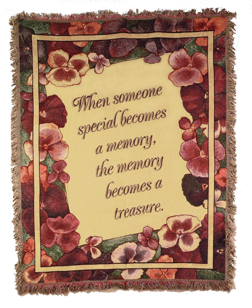 The Special Memory Throw Blanket is a quality made blanket that is appropriate for sending to the home of the deceased. The message on this blanket reads "When someone special becomes a memory, the memory becomes a treasure." This message is surrounded by beautiful, colorful flowers.