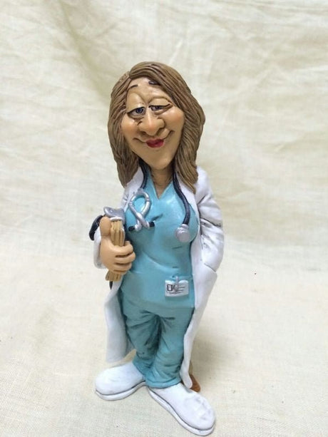 Warren Stratford set out with the goal to make recipients of his figurines smile by highlighting the humor in their occupations and everyday lives. He designs his statues with exaggerated proportions that mimic the caricatures you can find at a fair or amusement park. Some of the figures feature larger than life smiles, hair, feet, or even stomachs! The bobble head Stratford created for Jay Leno was a natural match for the artist’s exaggerated style with Leno’s famous chin and hairdo. These gifts are sure to bring levity when the stress of work seems overwhelming. Some of the occupations depicted by Stratford include: