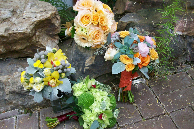 A collection of beautiful bridal bouquets that we have made for previous weddings