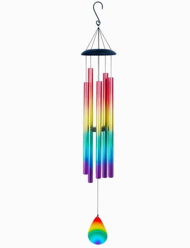 The Rainbow Wind Chime adds beautiful music and a kaleidoscope of color to gardens and patios. The colorful wind chime is a gift for anyone who loves to spend time outdoors. Sit back and relax, as you listen to the uplifting sounds of the Rainbow Wind Chime.