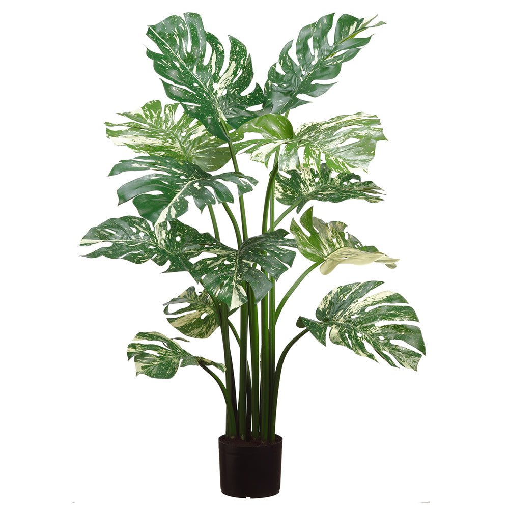 The Split Philodendron is 48” high, so it can be displayed on a large table or placed directly on the floor to brighten up corners. The artificial plant is contained in a round pot and has beautiful variegated green leaves from floor to tip. It is made of polyester, plastic, and wire.