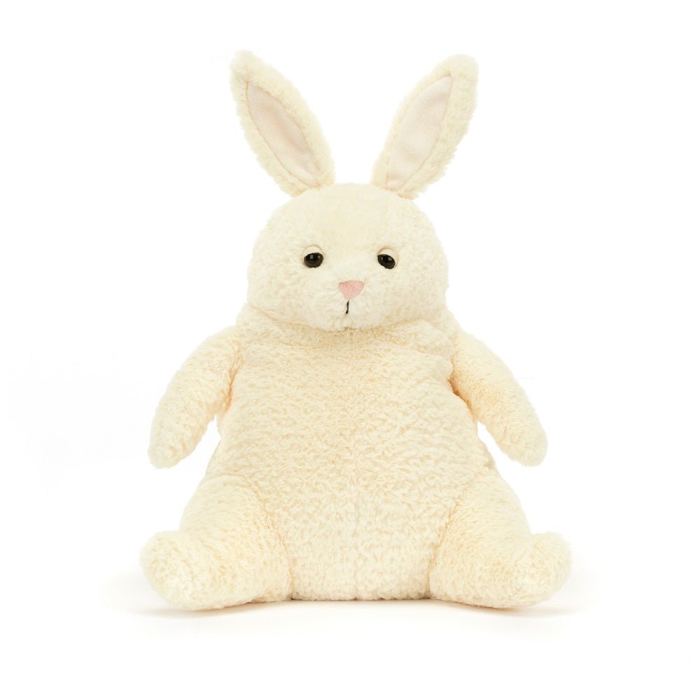 Amore Bunny has creamy fur and a big huggable tummy! The bunny's floppy ears and silly smile make him a sweet gift for Easter, holidays, and birthdays.