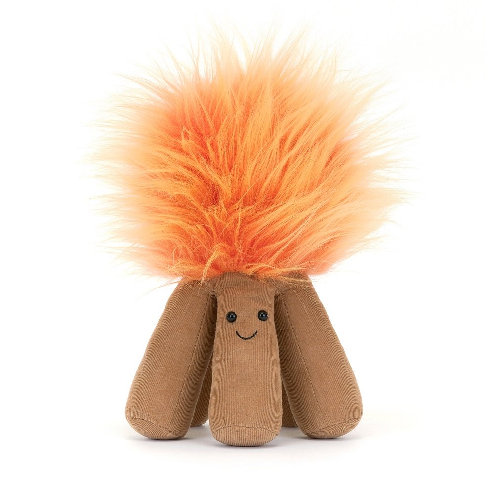 The Amuseables Campfire is topped with a wild mane of fiery red fluff. The flames are supported by a pyramid of soft, brown logs. One of the logs wears the signature smiling face of all the Amuseables in Jellycat’s collection. The Amuseables Campfire is a unique gift for a family of campers or anyone who loves to sit around the fire. Give it for birthdays or holidays; the Amuseables Campfire ships anywhere!