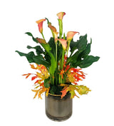 Our popular Urban Calla with an Autumn flare! This fall season specialty is ready to bring in the warm tones of the crisp, falling leaves and a refreshing style like a crisp Autumn breeze. This tabletop, house plant is the perfect mix of originality and festivity and designed to bring a true autumn celebration into any room, this fall!