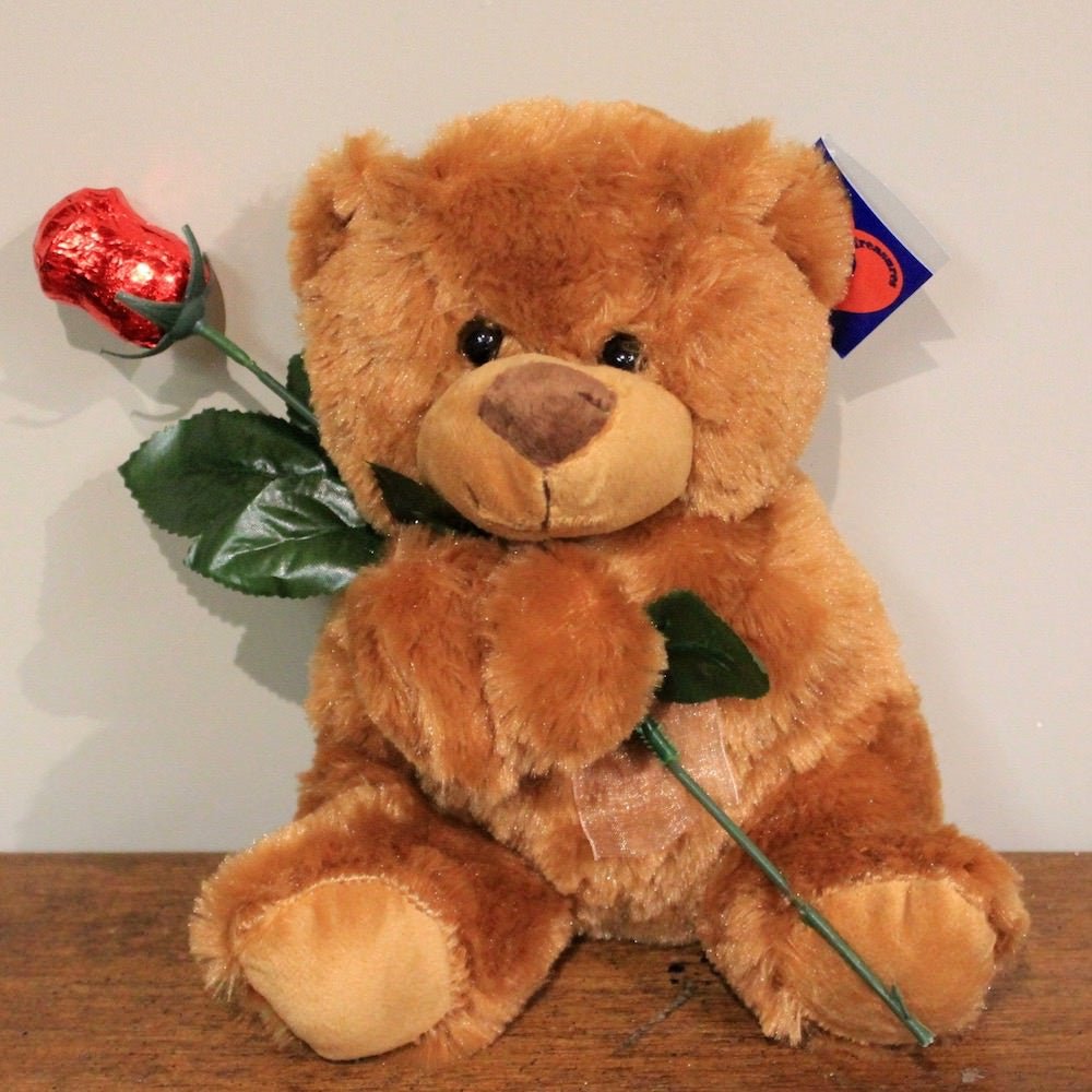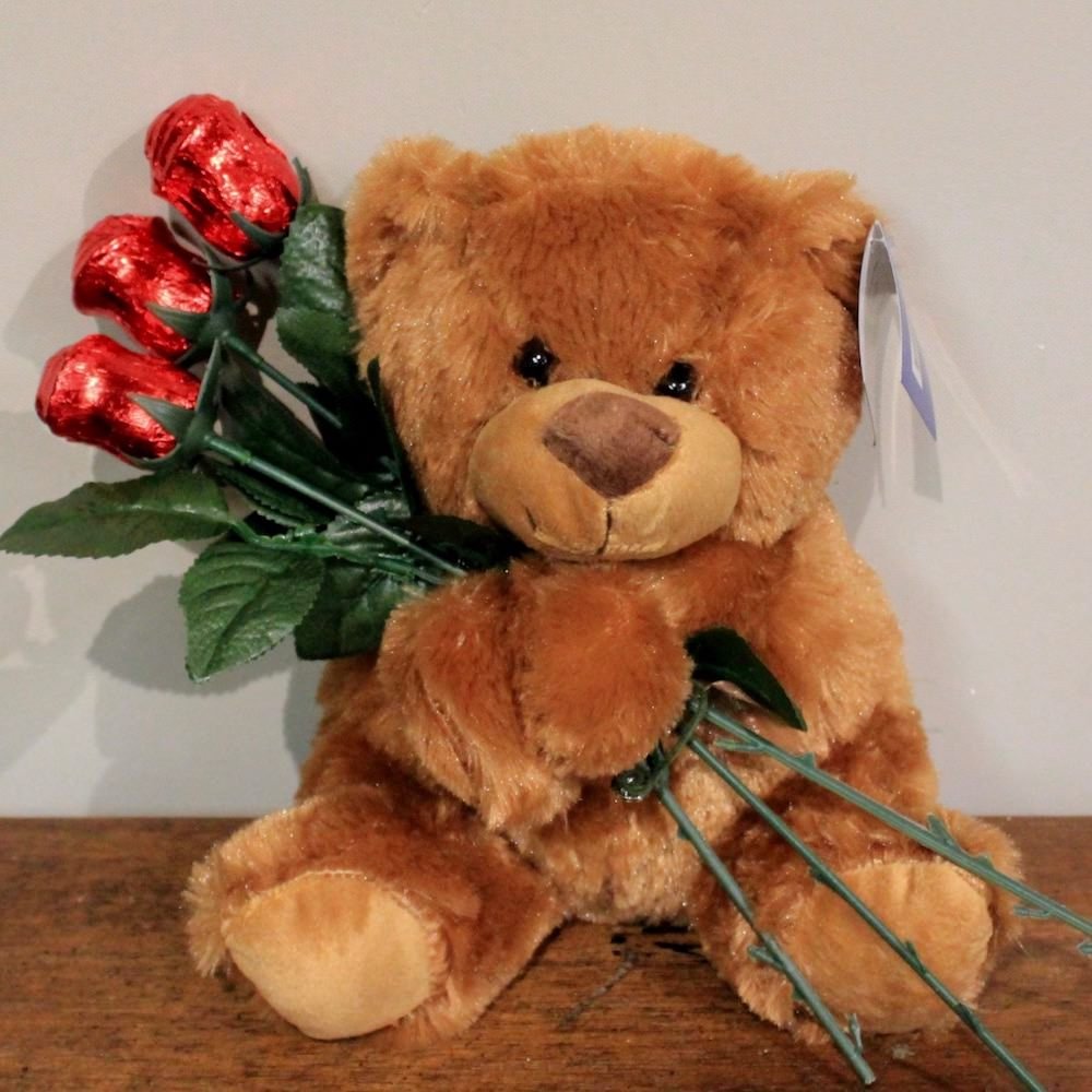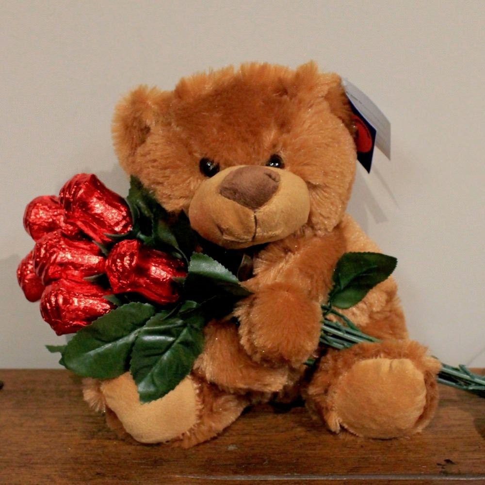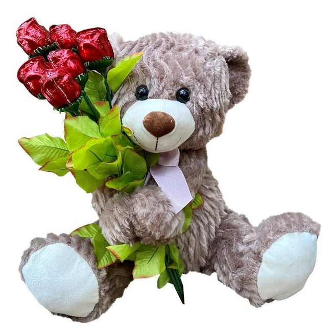 Beary Sweet is great choice for Valentine's Day or anniversary gifts from afar. Available for delivery Nationwide, our teddy bears are ready to bring these sweet chocolate roses to your sweetheart. Roses arrive wrapped in red foil to give the impression of real red roses. The stems even have green artificial leaves!