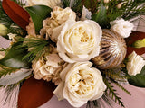 Boho Holiday Centerpiece is right on trend with a drapey shape and artistic accents. Boho or bohemian designs are characterized by their unconventional shape. Rather than a mound of flowers of greenery, you can expect boho arrangements to have flowers that reach up, down, and side to side. All this movement makes these centerpieces so interesting, cozy, and undone. The silver accents give a touch of holiday sparkle without feeling cheesy. The Boho Holiday Centerpiece is a versatile winter gift that is fitting for holidays like Christmas, Hanukkah, or other parties.
