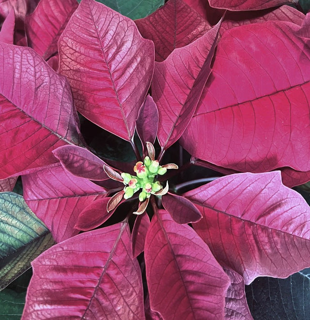 Elevate your holiday décor with the sophisticated "Burgundy Poinsettia," showcasing rich, deep burgundy leaves. This luxurious variety adds a touch of elegance and warmth to any festive setting.