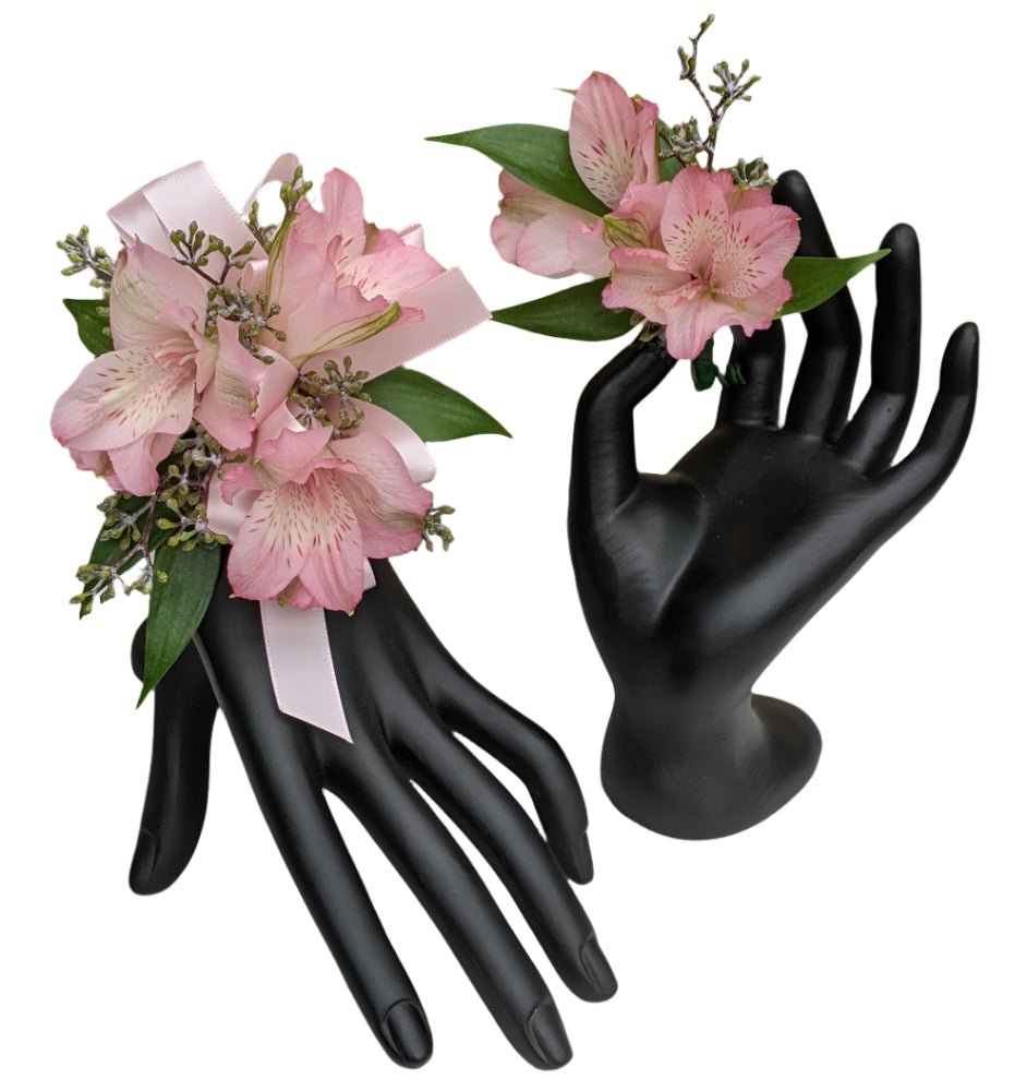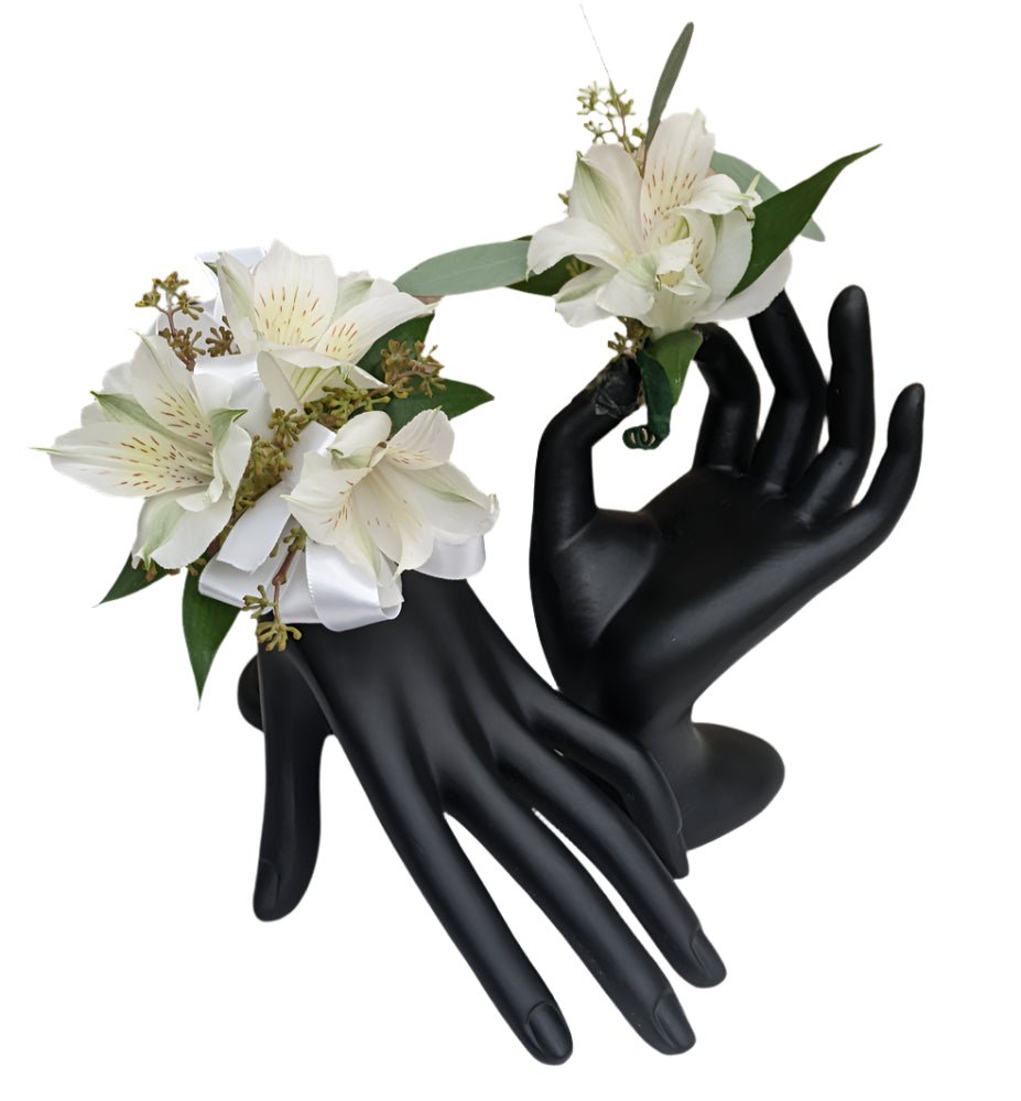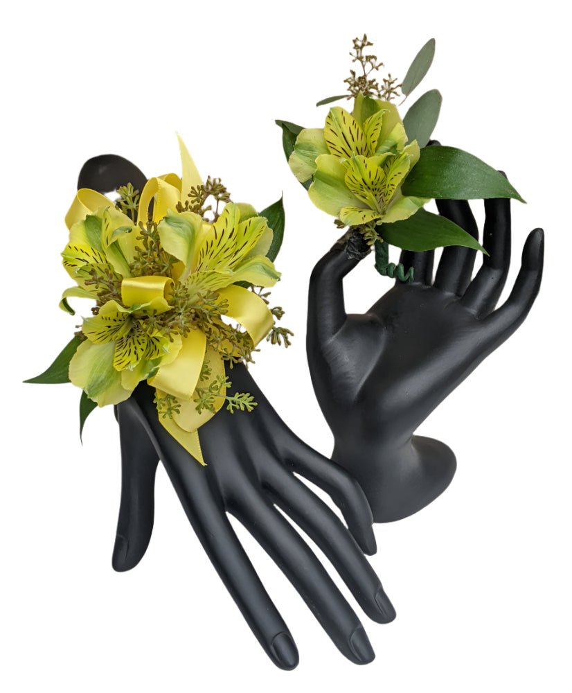 Delicate blooms of colorful Peruvian lilies accented with just the perfect amount of airy greenery make this corsage and boutonniere combo ideal for those who just want a small floral accent for their special occasions. Pick your preferred color and we'll take care of the rest.