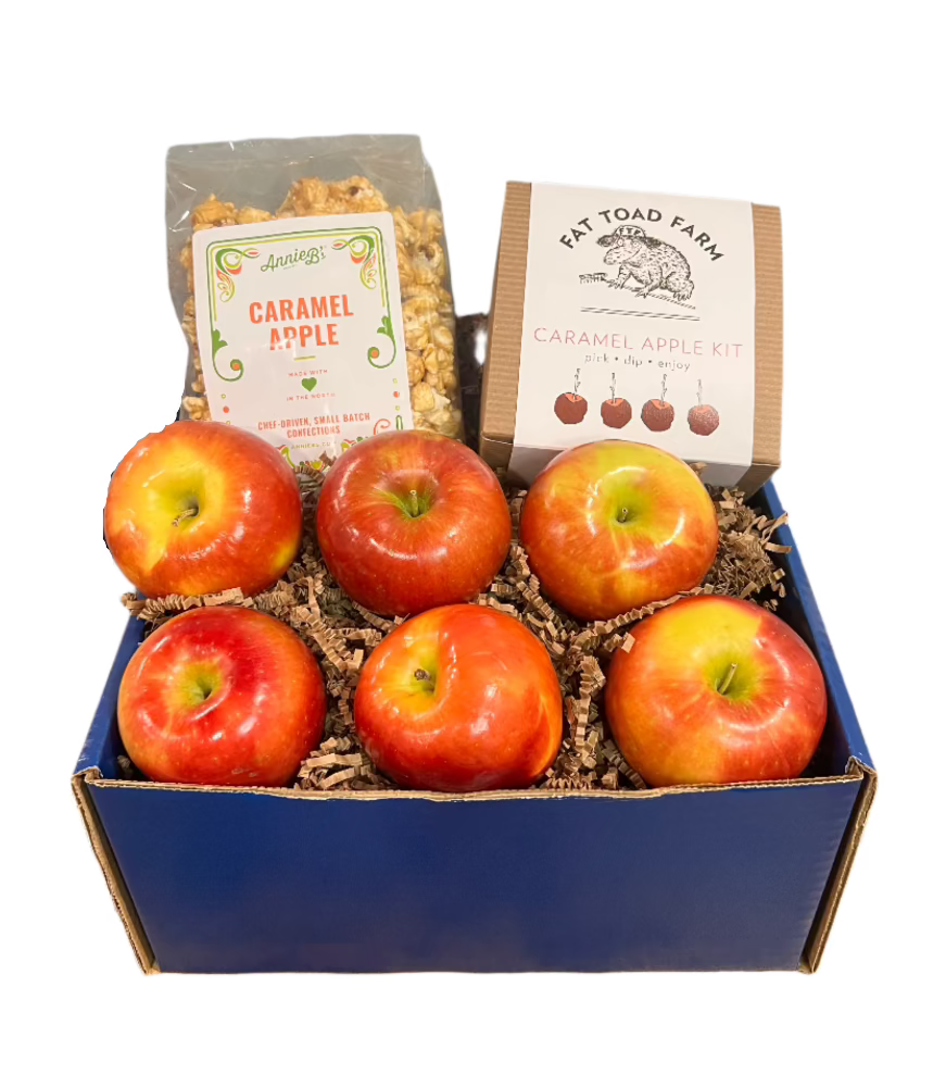 Indulge in the ultimate gift for apple lovers with our Cosmic Crisp Apple Gift Basket. Enjoy hand-picked cosmic crisp apples, known for their crisp, juicy, and flavorful taste. Included in the basket is a fun caramel apple making kit. It's the perfect gift for any occasion!