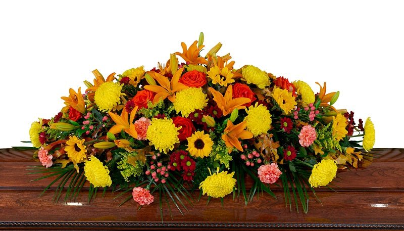 This casket spray can be displayed directly on top of a closed casket or positioned above an open lid of the caskets.