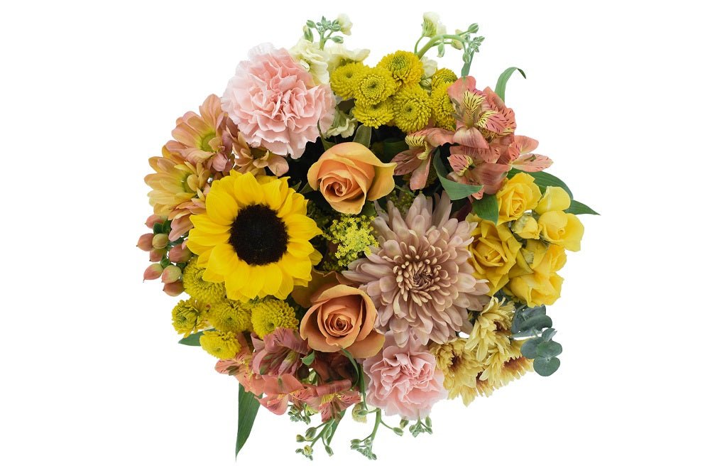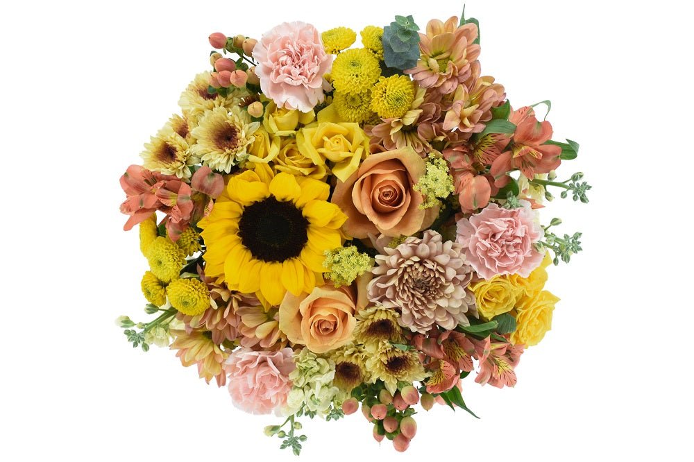 The Fall Magic Bouquet features gorgeous flowers--just like the ones you’d find at your favorite roadside stand or seasonal shopping spot. With an array of vibrant colors and favorites like sunflowers and roses, the Fall Magic Bouquet makes a great birthday, hostess, or anniversary gift for anyone who loves the fall season. This bouquet is available for nationwide delivery, so you can take a piece of the farmer’s market home with you, wherever you are.