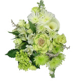 No matter the occasion, a bouquet of premium, lush fresh cut flowers has the power to make any one feel special! Whether you are looking for the perfect gift to celebrate, comfort, congratulate, or cheer up your recipient- this specialty, hand wrapped bouquet is the perfect selection! Assorted blooms in beautiful ivory and green hues create an undeniably, radiant beauty that will shine with style and sophistication!