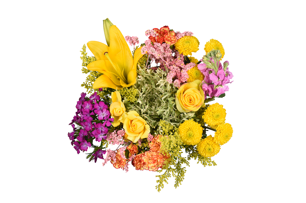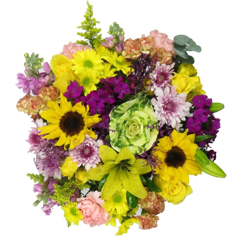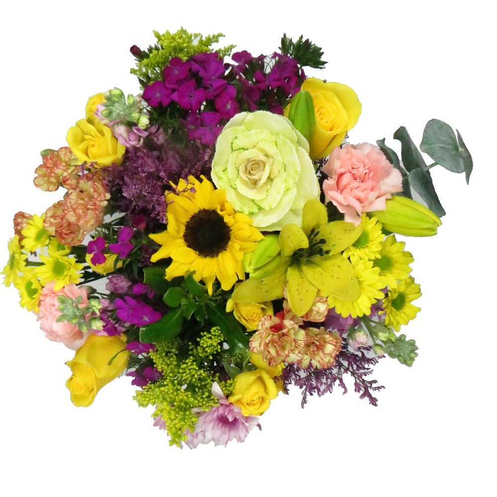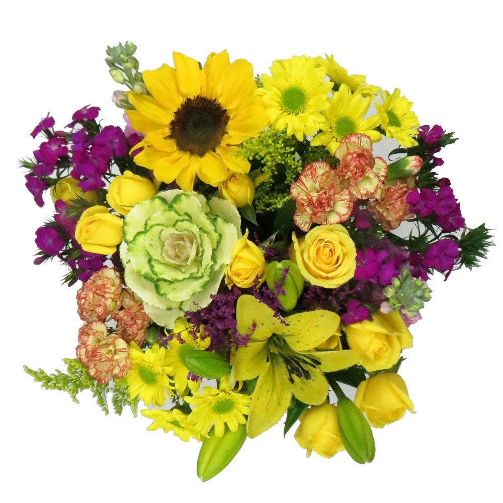 A lush bouquet exploding in color, vibrancy, style, and beauty! This premium assortment of fresh cut, seasonal flowers is the perfect selection to ensure your recipient feels special in every way. It's warm tones and bright hues warms the heart of your recipient like a sunny, summer day. Whether you are looking to celebrate with your recipient for a special occasion or to uplift the spirits of your recipient during a difficult time, this selection is ready to radiate warm rays of positivity and happiness throughout the atmosphere!