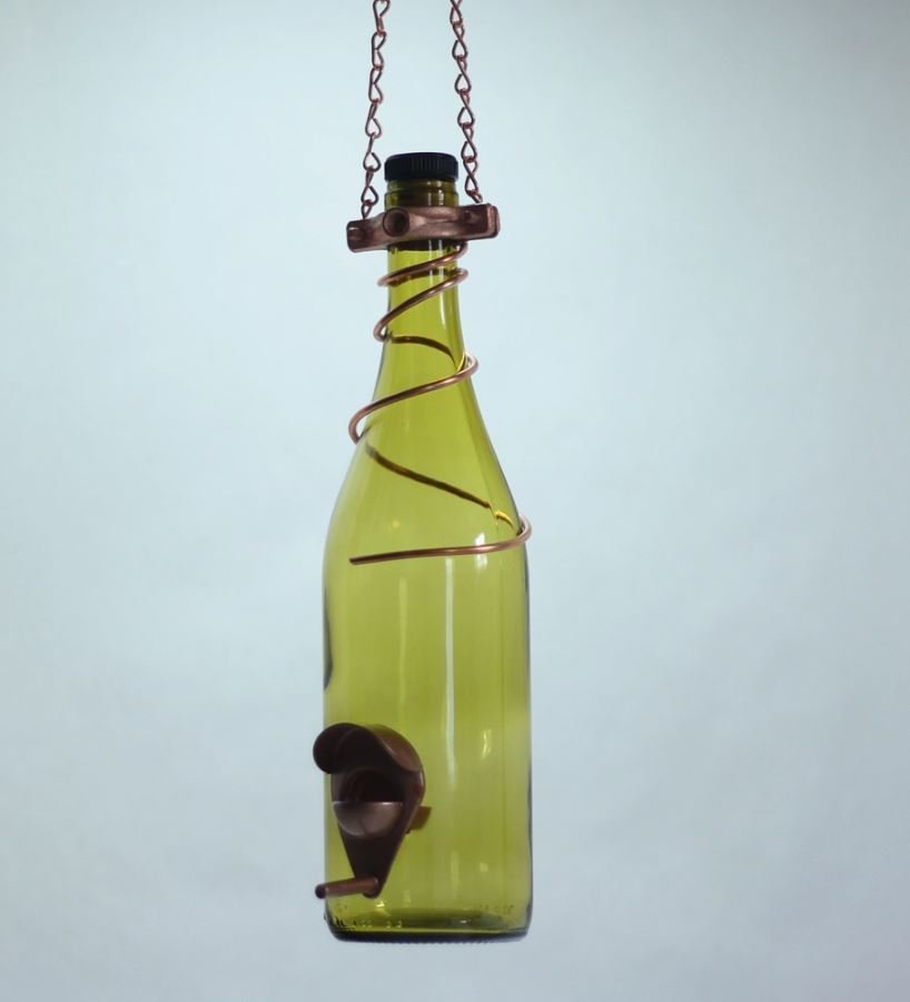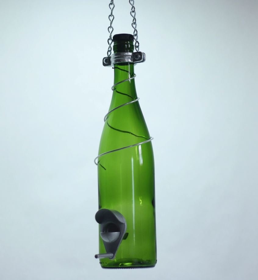 Glass Wine Bottle Bird Feeder