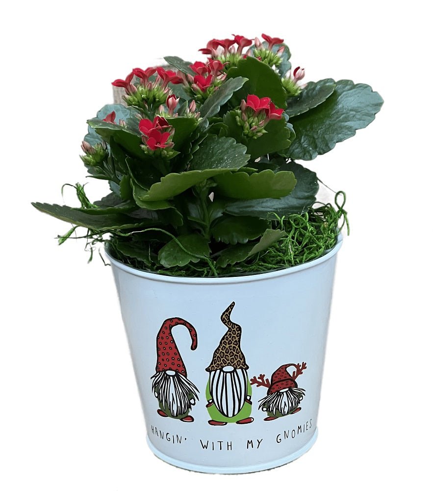 Bring the Gnome Kalanchoe whenever and wherever you're hangin' this holiday season! A decorative tin featuring adorable gnomes holds a brightly blooming Kalanchoe plant. The Gnome Kalanchoe makes a great gift for hosts, friends, or anyone who loves these quirky woodland creatures.