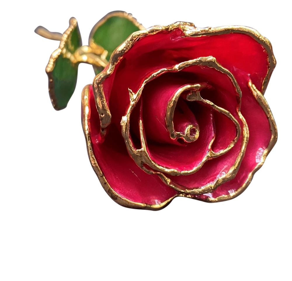 A rose whose unique beauty will last a lifetime! A real rose dipped into 24 karat gold flaunts its beauty and originality when added to any interior decor. Its vibrant pink pearl finish and artistic look is the perfect selection for your next big occasion to ensure your recipient feels your love, friendship and appreciation year after year!