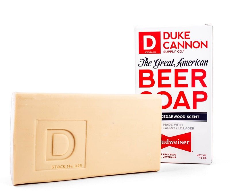 Wash up with this incredibly smelling Great American Beer Soap. Don't worry, it doesn't smell like beer. This large bar of soap has a memorable smell of warm cedarwood. Each bar is made with a hint of Budweiser, the king of beers.
