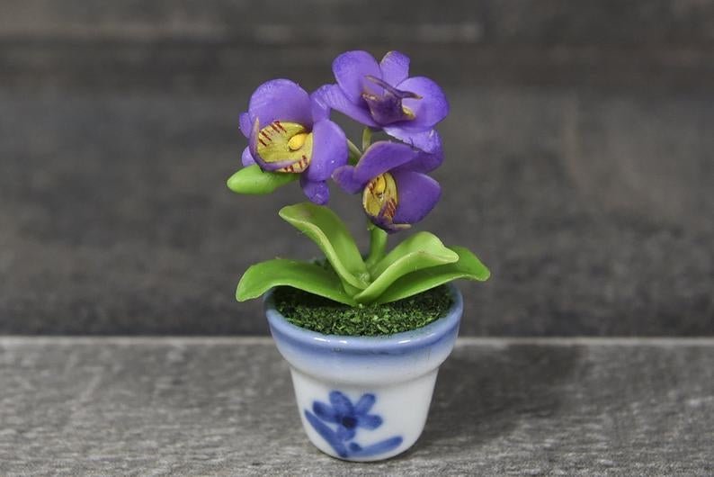 The Handmade Mini Phalaenopsis Orchid in Pot is a unique design that incorporates the beauty, style, and grace of a real Phalaenopsis orchid with its own, original and miniature twist! The Phalaenopsis orchid is a popular selection for celebrations of new beginnings, fresh starts, celebrations and love. This Phalaenopsis inspired piece of art is designed by hand to radiate the same uplifting and celebratory beauty, as a real blooming Phalaenopsis orchid. The tropical looks, vibrant coloring, and exquisitely unique petal shaping and texture is beautifully captured and displayed by the skilled and talented designer. The creation is designed with an organic, air-drying Japanese Luna Clay. Once the drying process is completed, the designer then uses a rich, oil based paint and articulately hand paints each and every detail from top to bottom. This is an excellent gift selection for any occasion, all throughout the year! It's simplicity in design and originality in style, is adored by all!