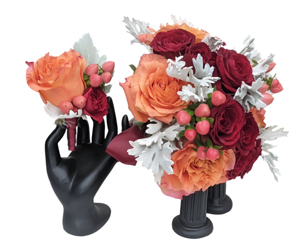 You and your date will make a statement with this package, featuring fresh, autumn-toned blooms. Perfect for prom or homecoming, this elegant floral set adds a warm, stylish touch to your special night!