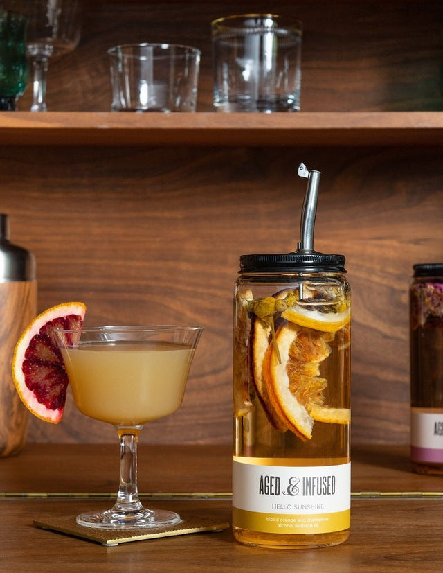 The Hello Sunshine drink infusion kit will have you feeling those sunny rays, even on cloudy days. Bright lemon and juicy blood orange are the start to yummy cocktails.