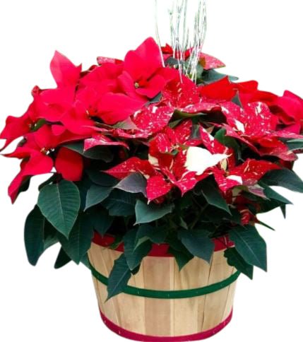 Our Huge Poinsettia Hamper is a selection that is enjoyed by everyone throughout the holiday season! Whether you are looking to wish your recipient(s) a Happy Holidays, or you're just looking for the perfect gift for another occasion during the holiday season, this is sure to make a lasting impression! Our designers use our finest poinsettias and arrange them within a large rustic, holiday basket to create a holiday masterpiece that can be enjoyed from any angle and throughout the duration of the holiday season. Whether you go with the all red or let our designers pick the best of the best, the final creation is one whose beauty fills any interior decor with holiday spirit and a uniquely chic style. This is the ultimate selection to ensure your recipient will get to enjoy some holiday beauty throughout the season as well as a keepsake basket to enjoy year after year!