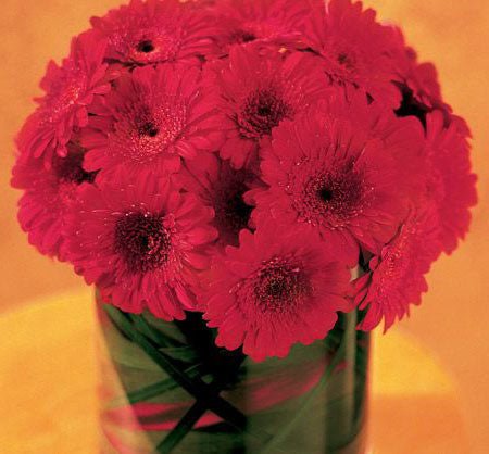 This monochromatic vase of gerbera daisies makes a beautiful and stylish centerpiece. The gerbera color can be customized to match your preferred color design.