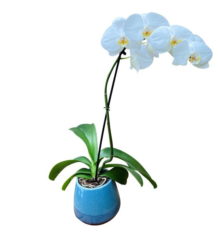 A stunning orchid plant within a ceramic pot that is modern and stylish, complementary to any interior decor style! The perfect gift of chic luxury, with a modern flare that your recipient is sure to adore. Perfect for every type of occasion, an excellent selection to ensure your recipient feels your celebration, comfort, friendship, and love.