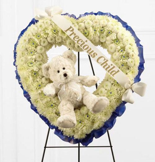 During such a time of sadness and sorrow, this funeral flower standing heart is an appropriate tribute to the precious child.