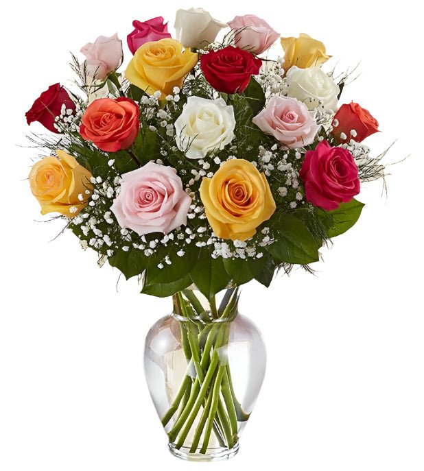 Premium Assorted Color Roses Arranged with Filler