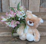 Send a hug that lasts. This long-lasting bouquet of alstroemeria comes with a vase and a cuddly bear—delivered free anywhere in the U. S.