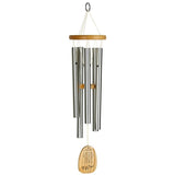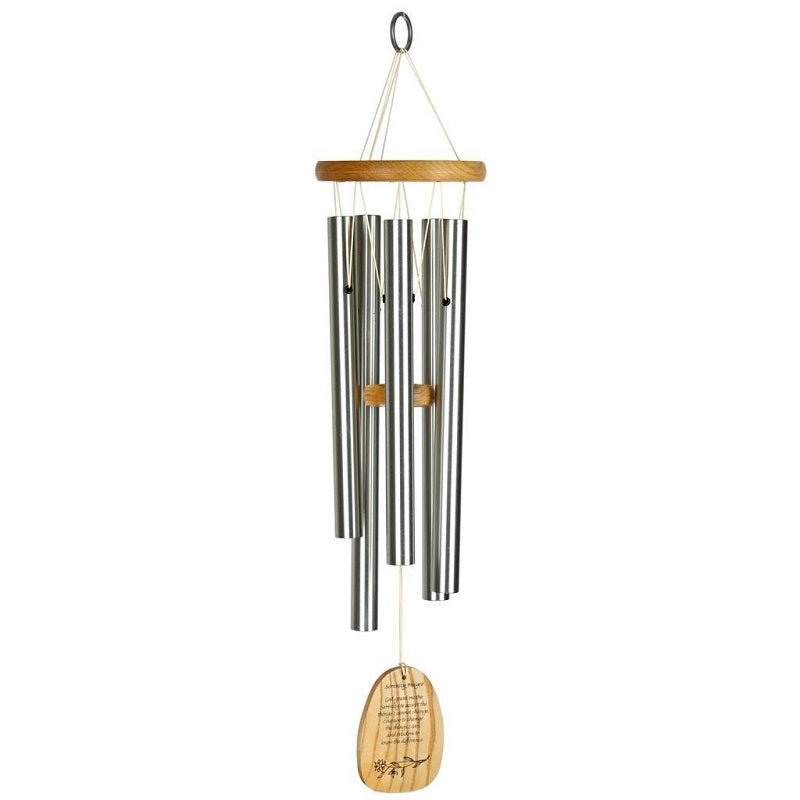 Our Serenity Prayer wind chime offers a beautiful tone from 5 silver aluminum tubes tuned to an ancient pentatonic scale. The decorative flower pattern on the windcatcher adds a nice accent to the prayer silkscreened above it. Add to your yard, garden or entryway for a serene sound.