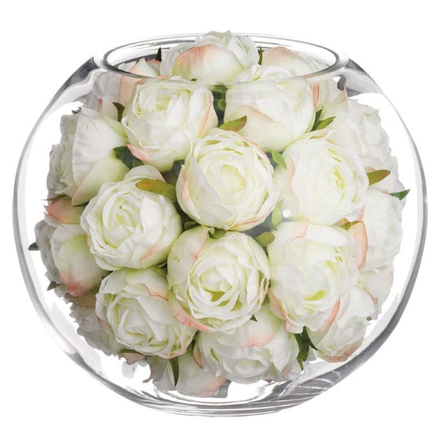 Silk Cream Roses in Glass Orb