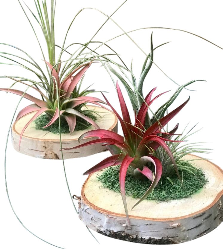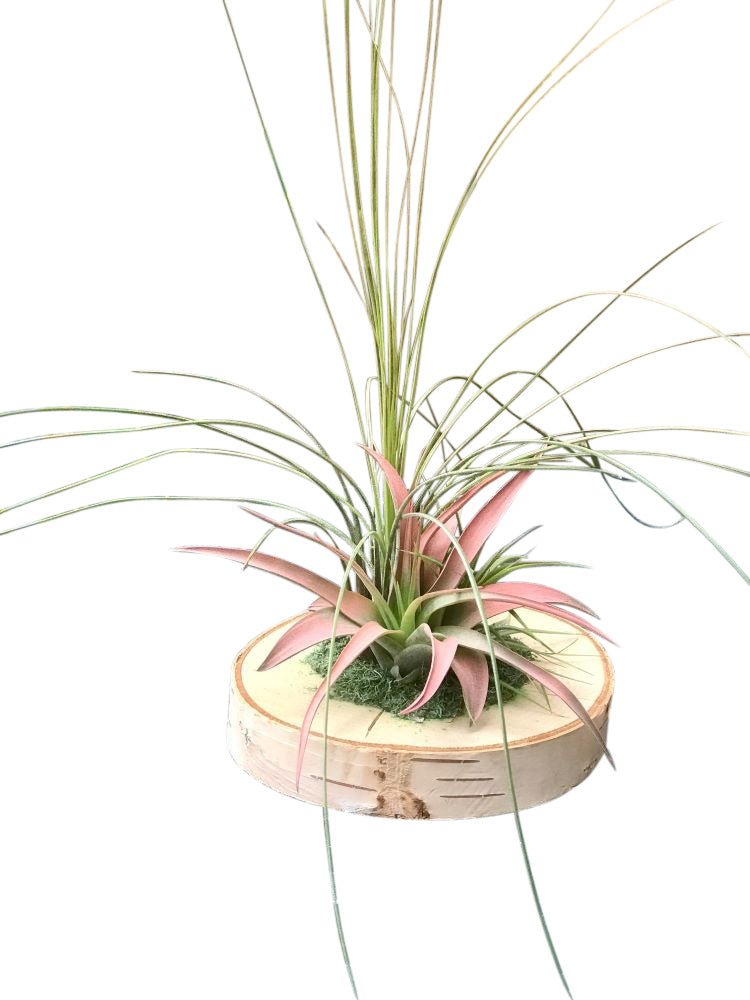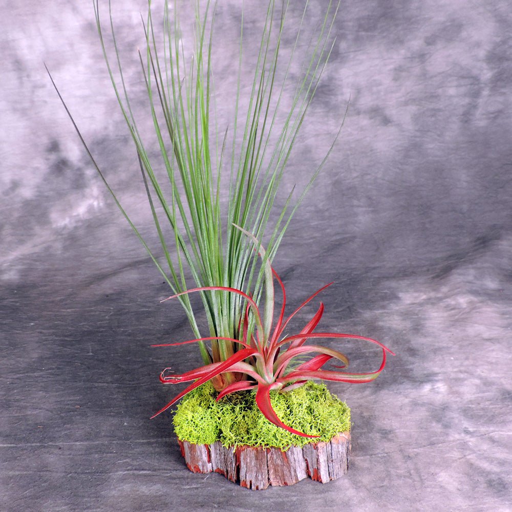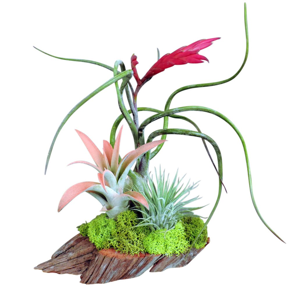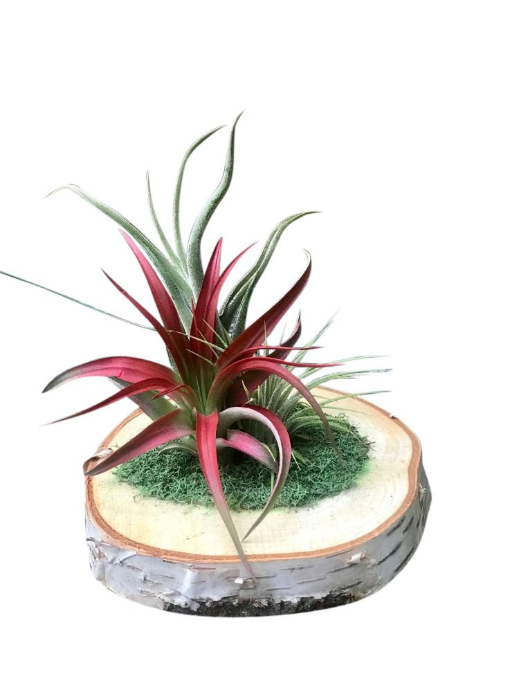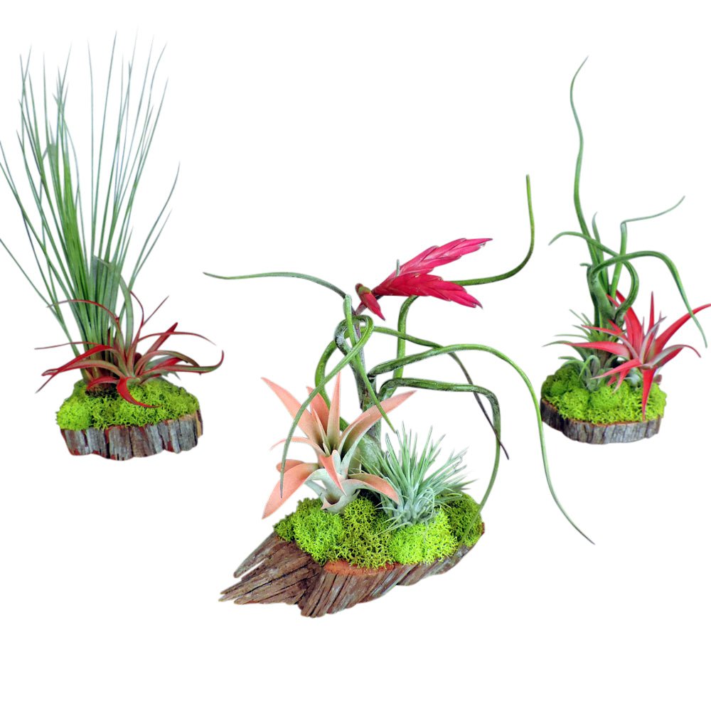 Our Triple Air Plant on Wood Base is a collection of tropical plants that thrive on very little water. A simple mist every few days will keep these plants happy and healthy. These plants are attached to a real piece of wood with decorative moss. Great for Secretaries Day as they don't take up too much desk space.