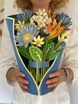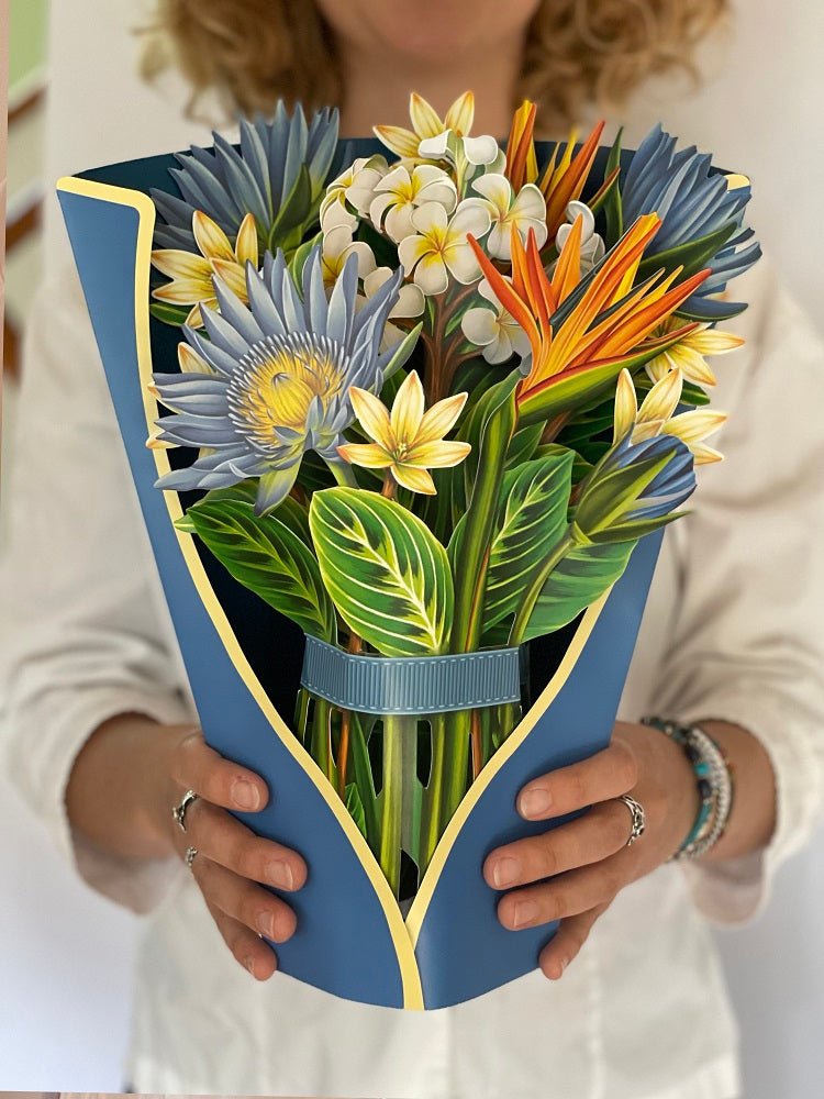 • Contains: 3D paper flowers, blank note card, paper vase, blue patterned envelope