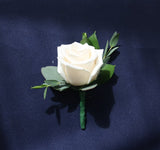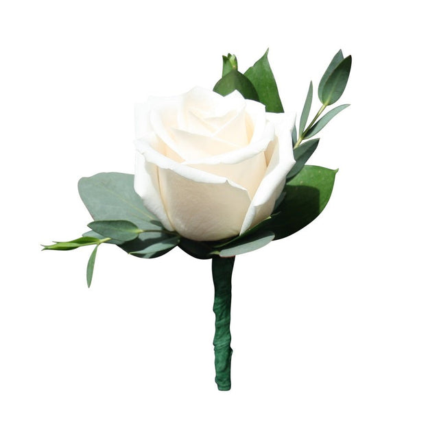 Symbolizing timeless love and devotion, this single rose bloom adds a touch of grace to the groom's or groomsmen's attire.