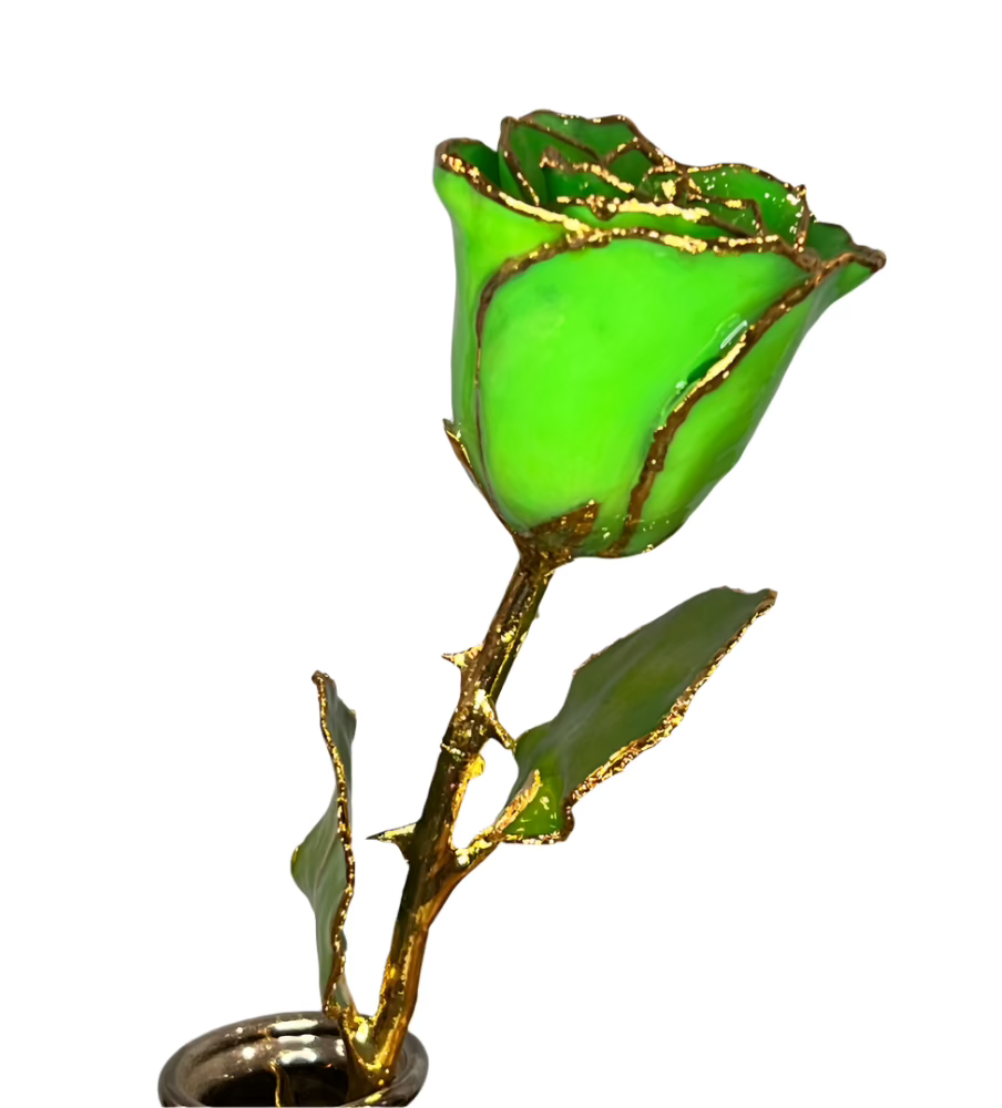 The Wicked Green Gold Dipped Rose is a gift for the ultimate fan of Elphaba. No wizard can de-greenify this rose–it is permanently preserved and dipped in 24 karat gold. It’s a gift for the Wicked Fan on anniversaries and Valentine’s Day, the one who has changed you for the better. For your ‘For Good.’